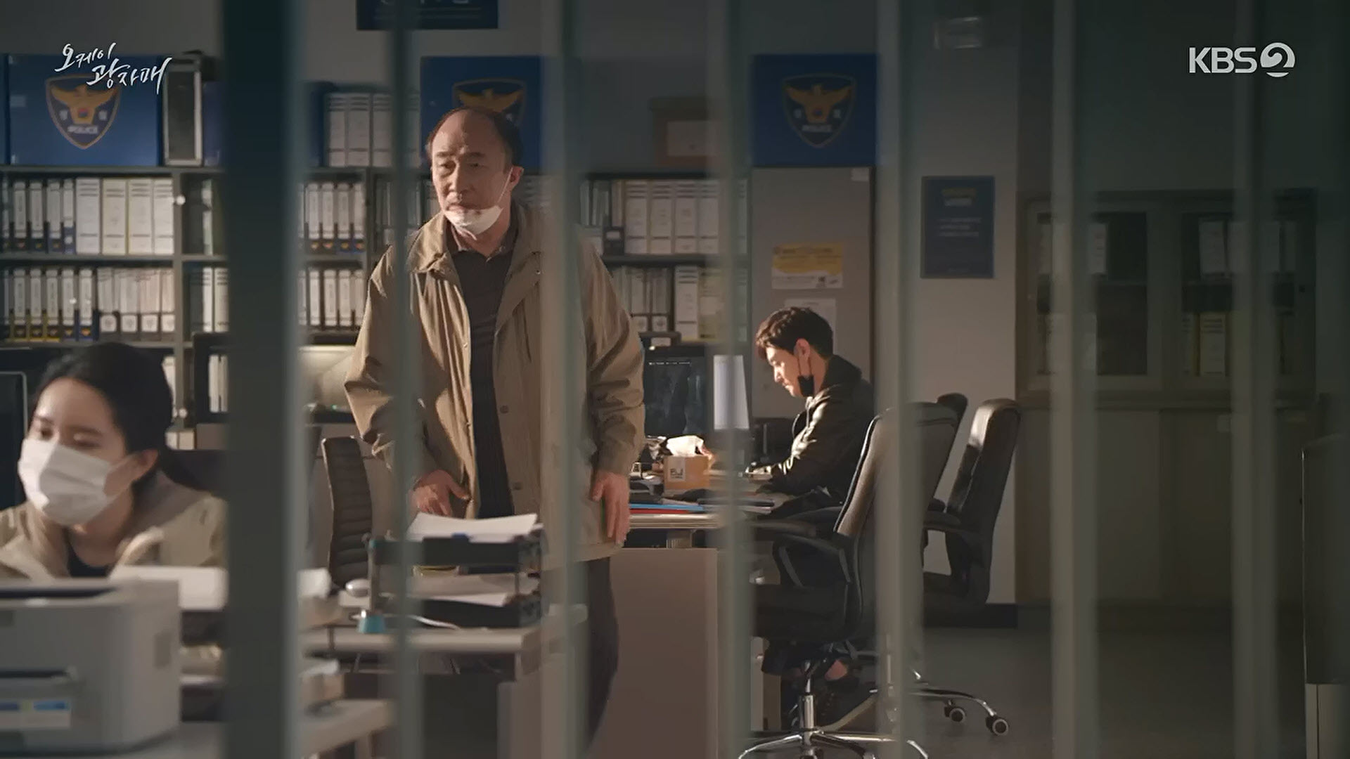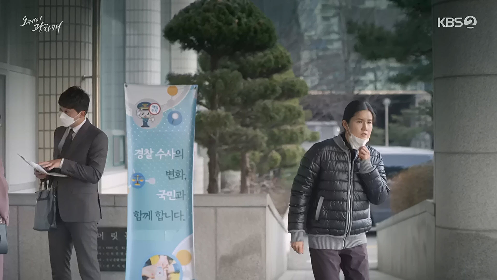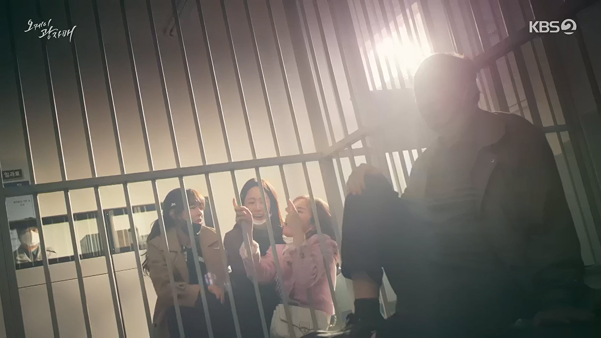 그리고는 아버지가 조사받으러 오셨어요. 광자매는 후다닥 나갑니다. 멀리 피하는 걸 보니 가족 맞나 싶네요.