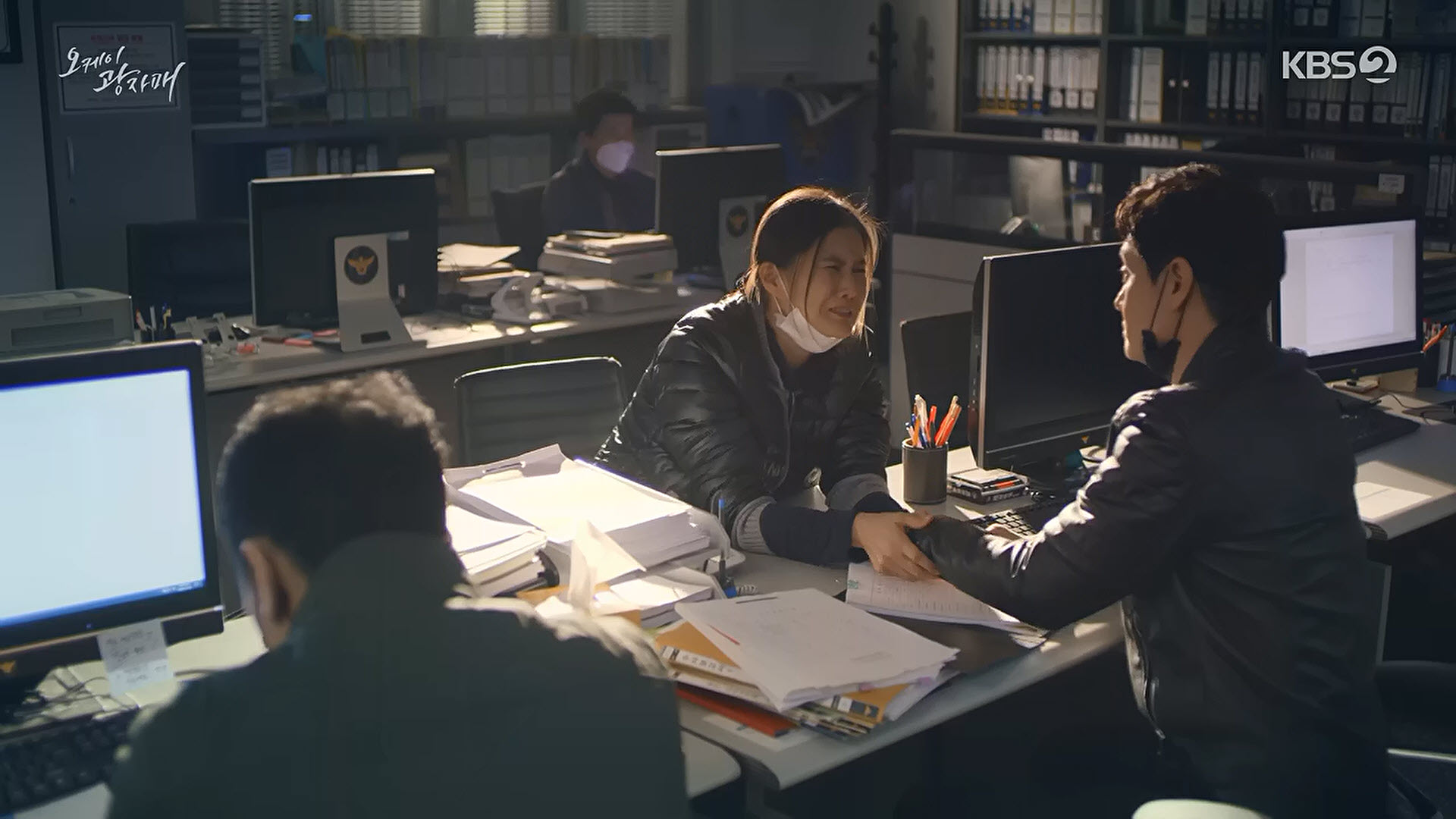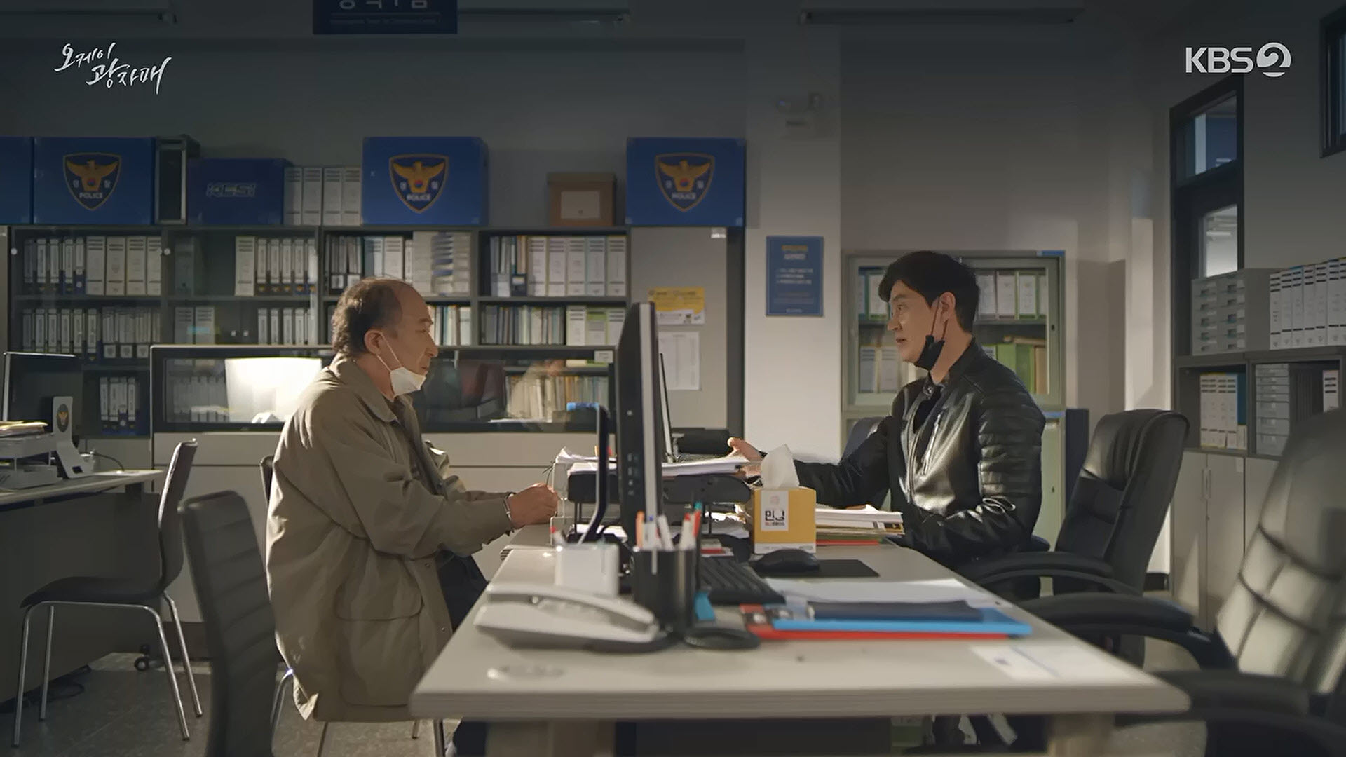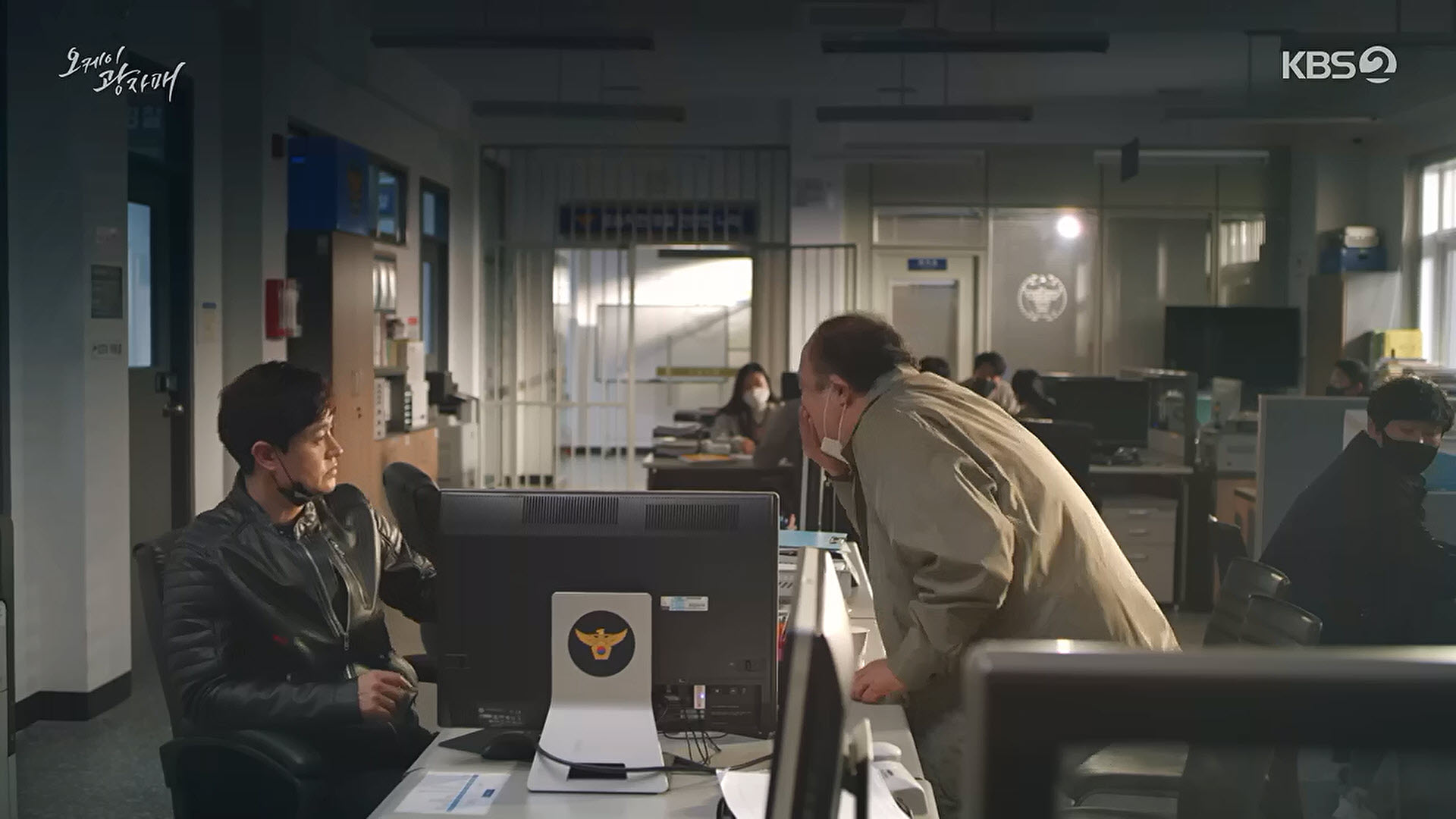 그리고는 아버지가 조사받으러 오셨어요. 광자매는 후다닥 나갑니다. 멀리 피하는 걸 보니 가족 맞나 싶네요.